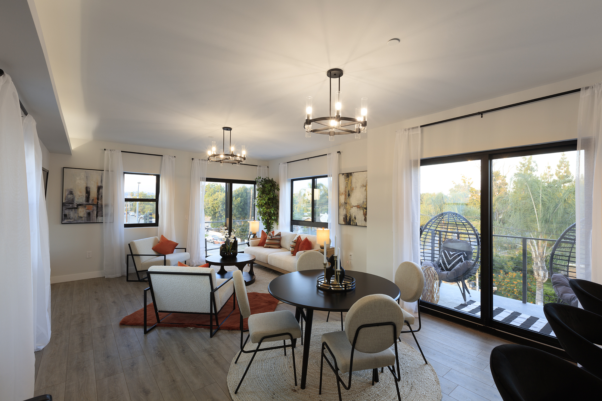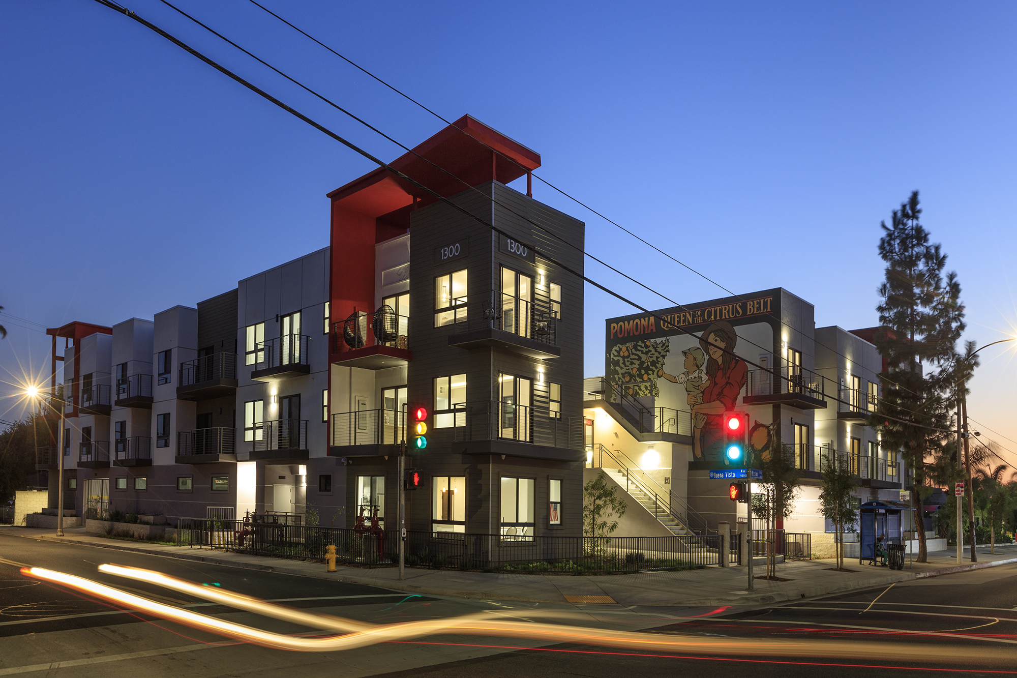 The New Construction of a 33-unit apartment complex in Pomona, CA is now complete and ready for use. The 3-story development sits on an area of 30,536 square feet, and includes 17,476 square feet of parking with 54 spots. The building comes complete with new state of the art in-unit appliances, common seating areas, and a gym.